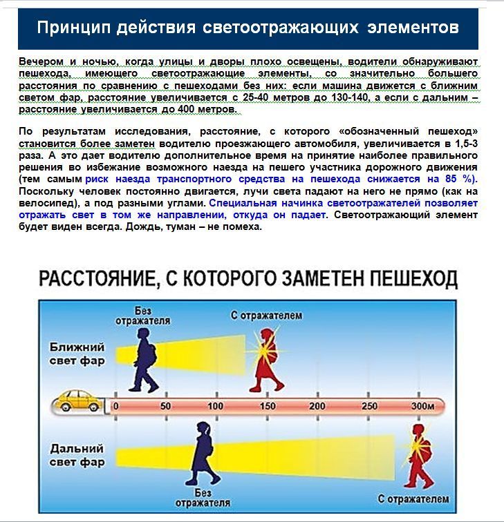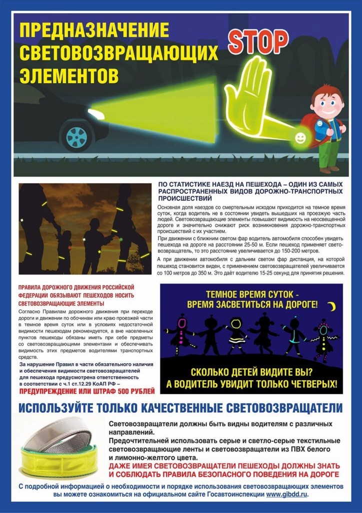 В целях снижения количества ДТП с участием детей-пешеходов в темное время суток, призываем Вас, родители, использовать светоотражающие элементы на верхней одежде ваших детей и вашей собственной одежде.